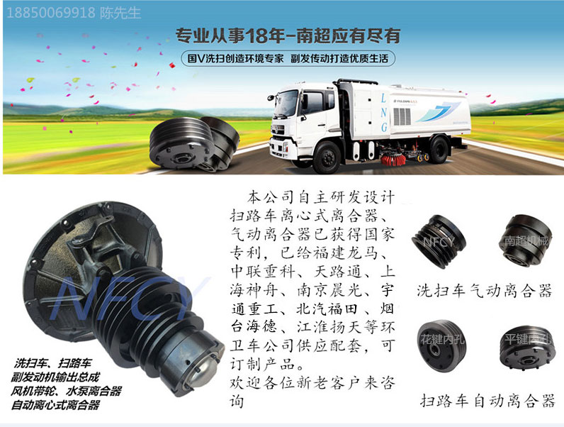 本公司自主研發(fā)設(shè)計掃路車離心離合器、氣動離合器已獲得國家專利。